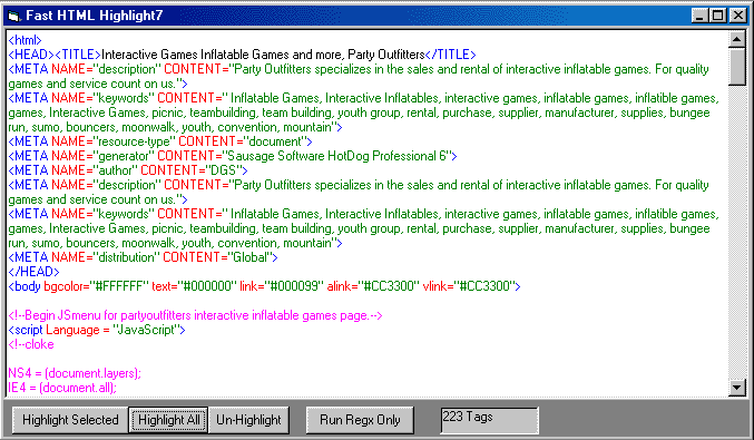 Selecting the text and changing the color in the rtf box is what is slow. Of all the html syntax highlighters I have seen posted here this is the Fastest accept for one that writes raw rtf to a file. I have been playing with this to see if I can speed this one up the same way.