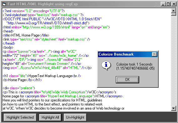 A small example? ok this regEx replace highlights all HTML tags one color.