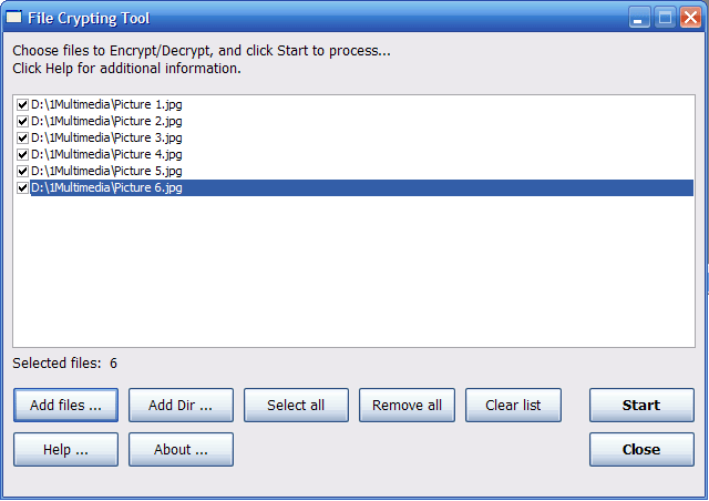 To encrypt/decrypt files, you have to choose one or more files, or folder where files you want to process exists.