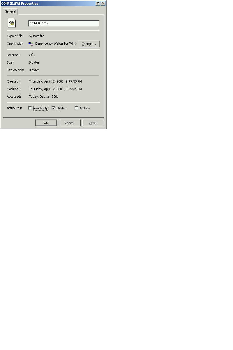 Display a files property dialog box