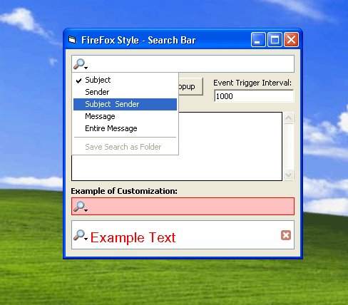 The FireFox Style SearchBox Control is an ActiveX Control that allows developers to add a neat Search Box to their Applications. As shown in the screenshot below, the test application allows you to change a variety of the controls properties, such as Back/Fore/Border Color, Font Size/Style, Event Trigger Interval, etc.