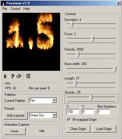 A new GUI and easier palette access, 2 new palettes, Animation saving and Bit-mapped origin (See screen shot).