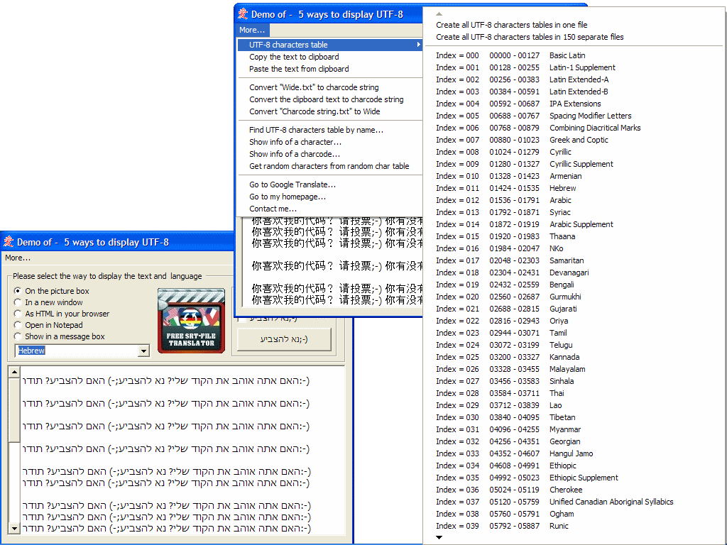Download Five ways to display UTF-8 without unicode controls + all 150 UTF-8 character code tables (36 KB)