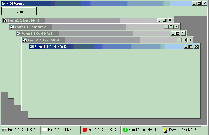 all u have to do is invoke ONE sub to add a form to the bar, and the rest will be done automatically. I have tested this control only in a MDI app, you are welcome to try its functionality in a SDI app, and leave your comments. Menu functions are not implemented fully, cause i couldn't decide how... Well u can add a custom menu, but control doesn't raise any event when a button is clicked. It's up to u to figure out and implement such functionality. Have fun (and rate!!!)