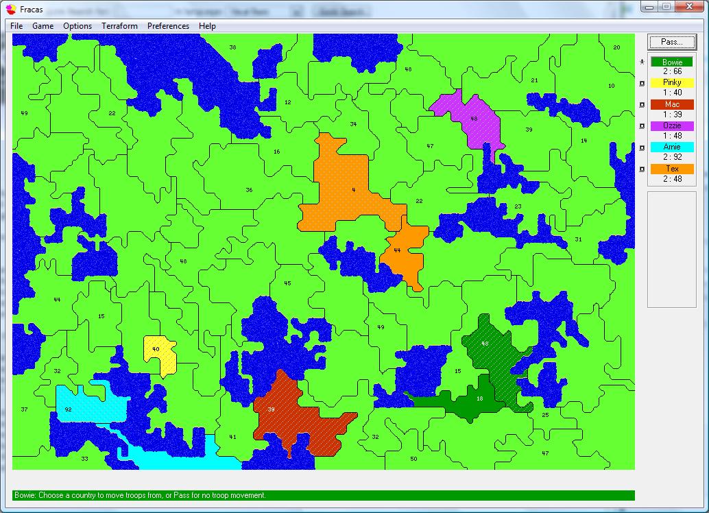 One of my favourite games, this is a strategy game written by Jason Merlo (and yes, I have his permission to post this here). The object of the game is to kill your opponents HQ while taking over as much land as possible to gain more troops. Up to 6-player network support. I have made some minor adjustments to the code originally posted by Jason (www.smozzie.com) to increase the speed and performance on all Winx based systems. Please note, that should this win any awards, they go to Jason not myself. Enjoy! Download is approx 4Mb.