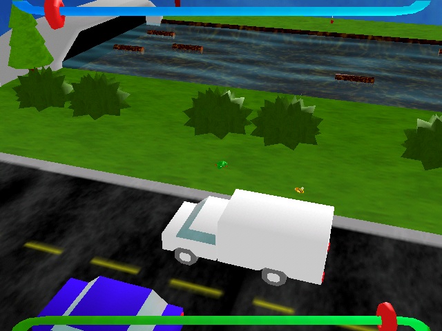 Frog3D is a 3D frogger game, with DirectX graphics and sound. The goal of the game is to get the frog across the road without becoming road pizza, and get him across the pirahna-infested river.