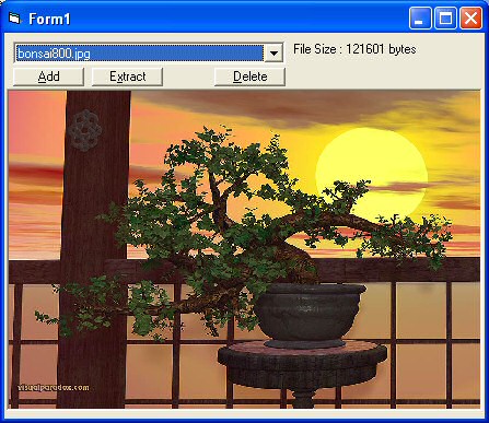 This app archives (no compression) picture files into one file. Has features for adding extracting and deleting from this archive.