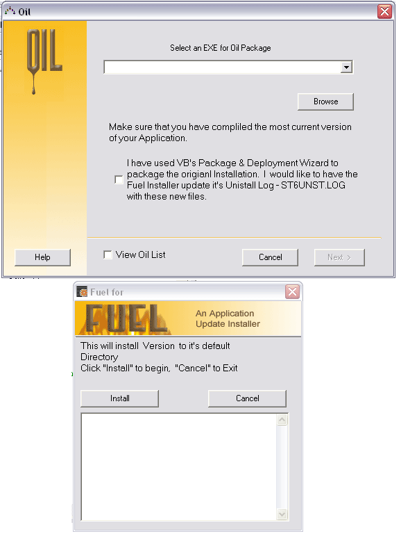 FuelOil is a two part Application Update Creator and Installer for VB6. Fuel is the Installer, Oil the update package creator.