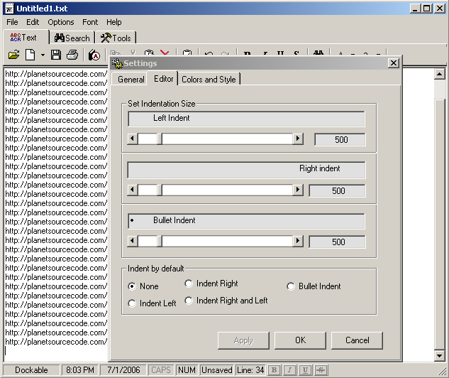 TextPad is a step between MSWord and a notepad. (Actually, its a few steps up from notepad). Some included features are: spell check, auto-capatalization of first character in a sentence, 'Options' page that gets stored in the registry, interchangable fonts, font size, back/foreground colors, clock along with a timer and an alarm, calendar, 'Always-On-Top' feature, cut-copy-paste along with 'Special cut/copy' as well as 'Private cut/copy', text-search/replace, calculator and more. Everything was tested and it seems to work as planned, but if you find any errors, please email me. Another thing, the project contains a total of 18 forms, but most of them are relatively small, so when compiled, its not slow, loads at approx. same speed as notepad. (*I know I probably could've reused some forms, oh , well*). Check it out and let me know what you think... ATTN: The FONTS change from toolbar is fixed. Font Change from toolbar is only for selected text. If you have any questions, please ask before assuming that something doesn't function proerly, I will gladly answer. Thanx