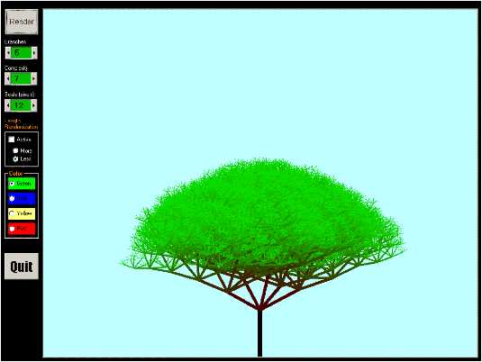 This program uses the concept of fractals in nature and generates realistic Trees using recursion ( the recursion part is heavily commented ). Each branch can be thought of a small tree on its own and every other branch on that branch. Hence this program uses the concept of recursion very effectively in creating trees