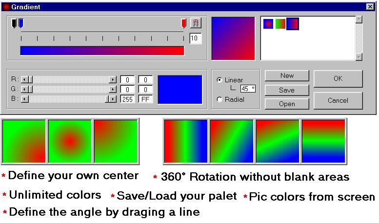 V 1.2 This is the most advanced gradient painter on VBC it can paint a liniair gradient in any angle WITHOUT blank areas!!! but that's not all you can also paint a radial gradient and define youre own center!!!