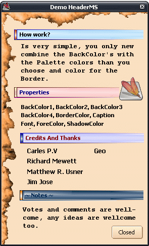 This usercontrol is a simple "frame" control but not exactly as Intrinsic VB "frame" control or another.