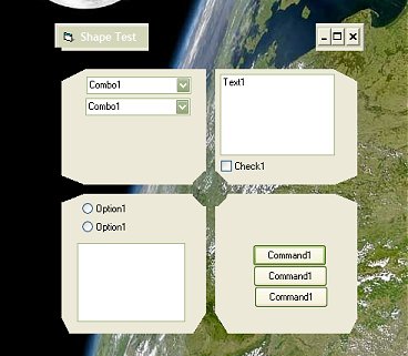 Just a little fun with regions. Pop this control on your form, set the shape you want and, at run-time, you will have form transparency where your control is sited and in the shape that you selected. Yeah, I know the screenshot and test project are cheesy but I just didn't have time to make something more elaborate. The goal for me was simply to learn more about regions. Perhaps, those of you with the luxury of time can combine the shapes to make something more interesting or extend the control with more shapes and, maybe, a custom shape method. Just extract where you want and launch the HolePunchGroup.vbg...