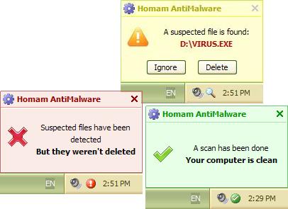 The program loads automatically with Windows and perform a quick scan: 1-When Windows starts, 2- Every 10 minuets, and 3- Each time you insert a new flash-drive (or any new drive).