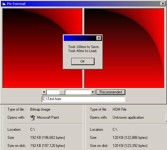 This is my own picture format. It is able to compress pictures by limiting how many colors are used. It can save in 100ms and load in 40ms. This shows you how to edit a picture fast and read/write to a file bit by bit.