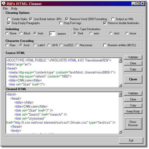 It cleans up HTML source and is a great MS Word HTML cleaner as well.