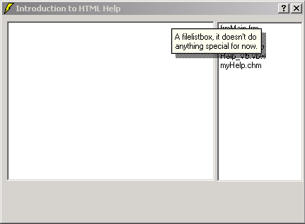 This tutorial will learn you how to combine HTML Help with VB, so your applications can easily have functions like "Whats this help" and "context sensitive help". This tutorial is fully illustrated, (17 images), everything done nicely step by step. VB6 is REQUIRED. This will not work with older versions.