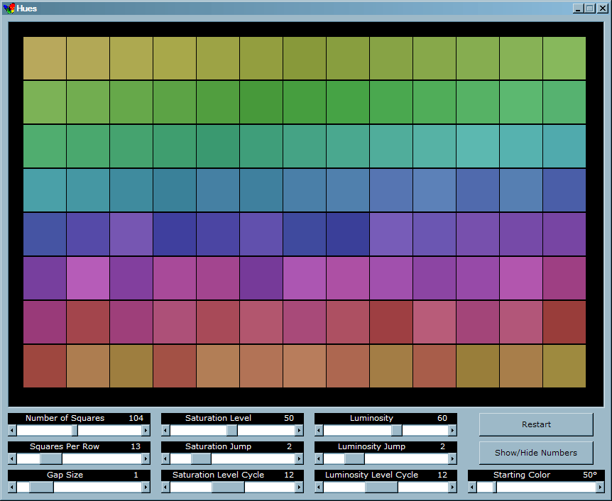 This program was inspired by the Farnsworth-Munsell 100 hue test which measures how good a person's color vision is.