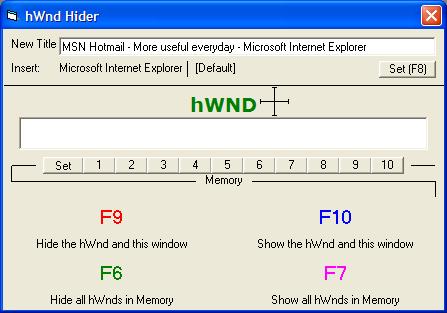There will be a new version comming out soon, with the following features: Hides a hWnd from Control Alt Delete when you choose to hide the window, cleaer code and new functions.