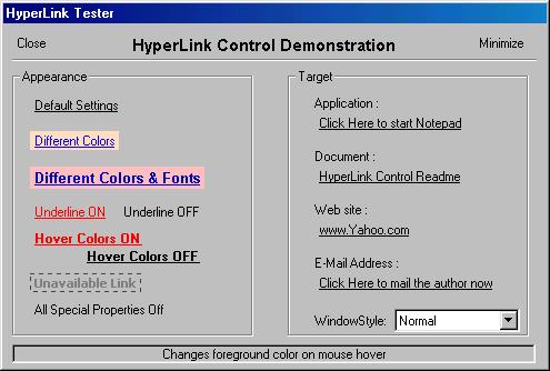 Add HyperLinks to your VB programs easily! Control Itself manages to open the target - any Program, Document, Web Address, Email Address.....are fully supported.