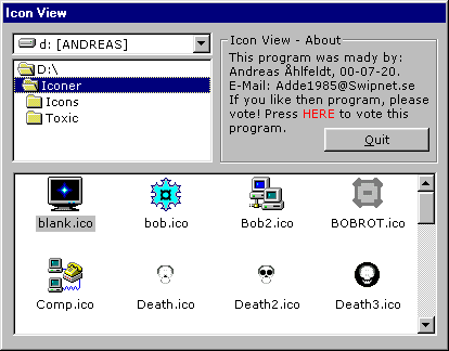 Select a directory and the program will show all icons in the selected directory, in one list.