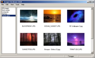 Collects and stores all your images into a single MDB database. You can view the images found the database as thumbnails, detailed list, or simple list. You can also export the images back out fo the database. Too many features to list. Just be sure the read the readme included.