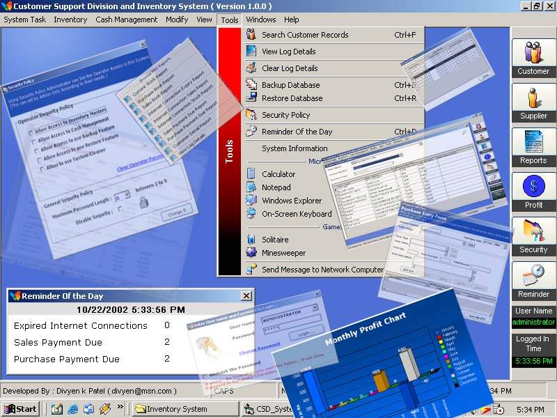 A Complete MIS SYSTEM [With Customer Support System, Financial Management System , Inventory Control System Including Sales, Purchase, Bills Receivable and Payable, Income and Expense maintenance] With 14 Useful Reports created in crystal report.