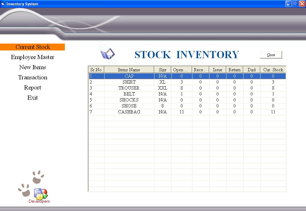 This is my second project and its same as my first program like database program. this program i do for who working in company and have dress code for employee and this Inventory is for dress code stock inventory system.