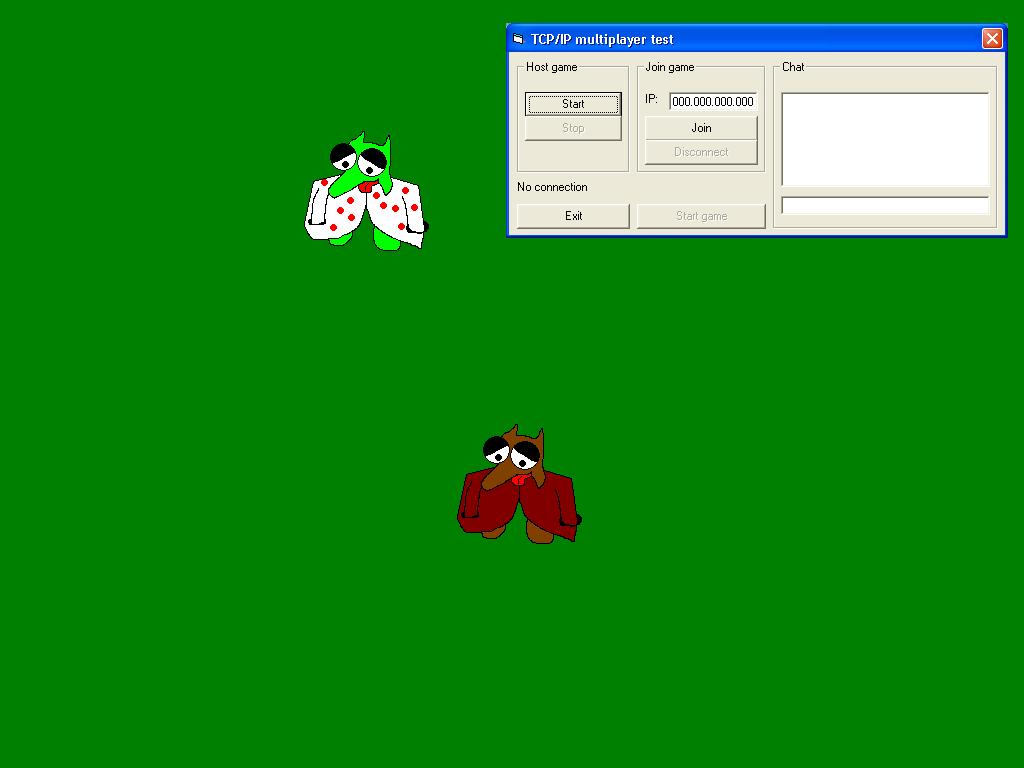 This is my first submission, a multiplayer game. In fact it's not really a game, because there isn't any quest or weapons or whatever, you can only see the other player walk around. The game doesn't use any directX, it's just moving pictureboxes. I think it's great for people who want to learn how to use winsock to make multiplayer games. And... what do you think about the cool animal (knoerf). Please give me some feedback. It's my first submission and I would really like to hear if I'm doing anything wrong... Thanks