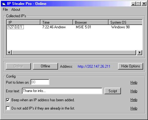 My code will retreive the IP Address of any user connecting to your IP via WWW. It will also get the Operating System version, and Browser info!