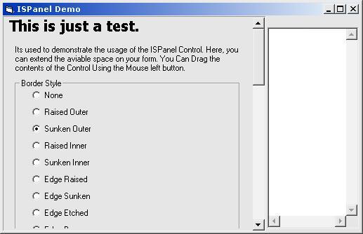 This is the last Version of the ISPannel Control, A control that allows programmers to extend the aviable space in their forms, adding the posibility of show scrollbars, and now, also select a borderstyle.