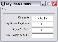 Download Key Finder (Key ASCII,Key Down,GetAsyncKeyState)
