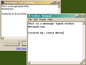 Monitor any key typed on the keyboard. Use the GUI to test, or supply a file name and run in the background. Uses GetAsyncKeyState API and GetKeyState. Great for finding out what children or spouses are doing on the internet. Instructions included to start the program when the Operating system starts.