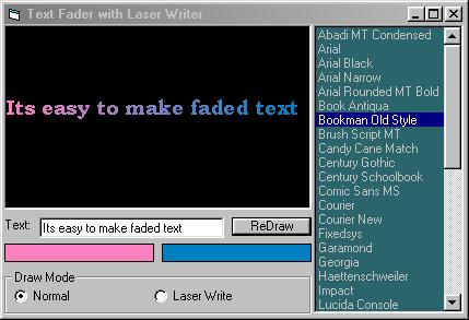 Based on my earlier Laser Writer, now you can write text with a laser effect, choose the font, and fade the text pixel by pixel. Check out the screenshot!