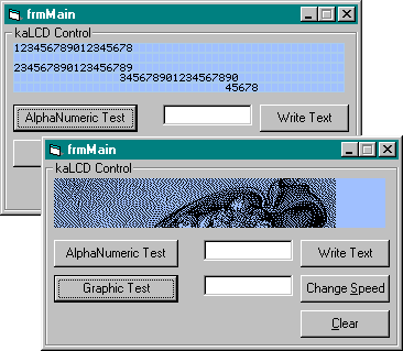 a Liquid Character Display with the ability to display a picture too. check out picture. Some Bugs fixed and the ability to load an external "charset" from a bitmap (2 included samples. 1 with 126 chars and the other with 255 chars).