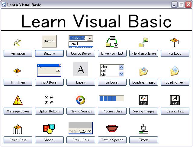I designed this with the near know-nothing computer enthusiast in mind-- those desiring to learn visual basic (as well as general programming concepts) but still having trouble finding good resources of information. From the main menu, you may select a topic, wherein its respective window will appear. You will then be able to actively explore each subject as it will appear to the user and by clicking on the question mark in the lower right-hand corner, draw up a screen showing the exact code and APIs/applicable controls. And for those who have moved beyond these tutorials, there is also the actual program's code to be read. Overall, it should be quite a helpful guide. Covered are subjects such as: