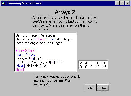 a tutorial written in vb, about vb statements, functions, built-in functions, variable types, decisions, simple graphics .. an excellent beginner's reference