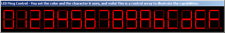 This 7 segment LED control has a simple code interface for displaying standard 7 segment characters. It's expandable to do anything you want. Just set the dim and bright colors, the character to display and you have it! Please vote, even if you don't like it.