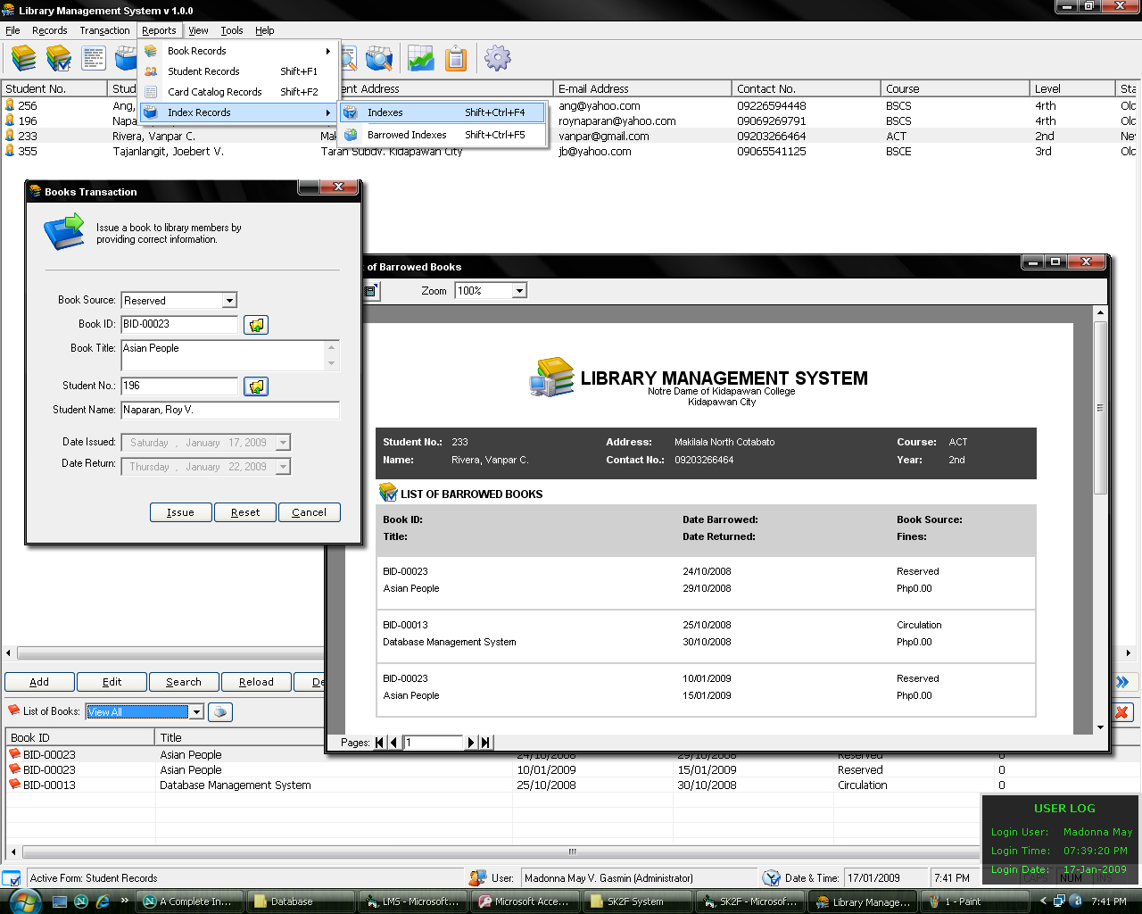This Library Management System is for the beginners in VB 6 like me. It has a card catalog system, indexing, book inventory and profiling. It shows how to connect with your database. It generates reports, receipts and book inventory. Please vote this program. GOD BLESS YOU ALL..You can download missing files here https://www.mediafire.com/?gjlmbqy3xmc