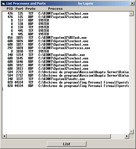 To know the processes with open ports we will access at the TDI level (Transport Driver Interface) helping us of the native functions located in the system library NTDLL.DLL.