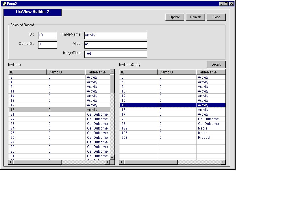 By request, I have added a function 'RecordDetails' that will do a SQL selection based on an item in the ListView...
