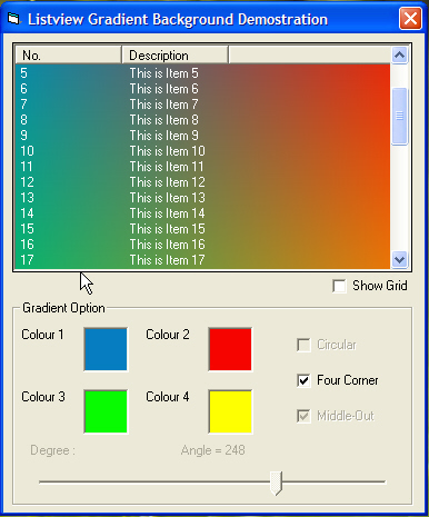 Paint the listview background with wonderful gradient effect (Degree,Cicular & Four Corner Gradient)PLEASE VOTE FOR ME !!!