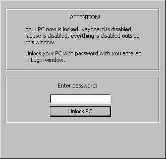This easy code show you how lock your PC in one second with password. All is loceked(mouse,keyboard etc...).