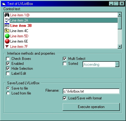 Emule a listbox control based into a listview control, support formatatio of item (like bold, forecolor, etc...) and support images.
