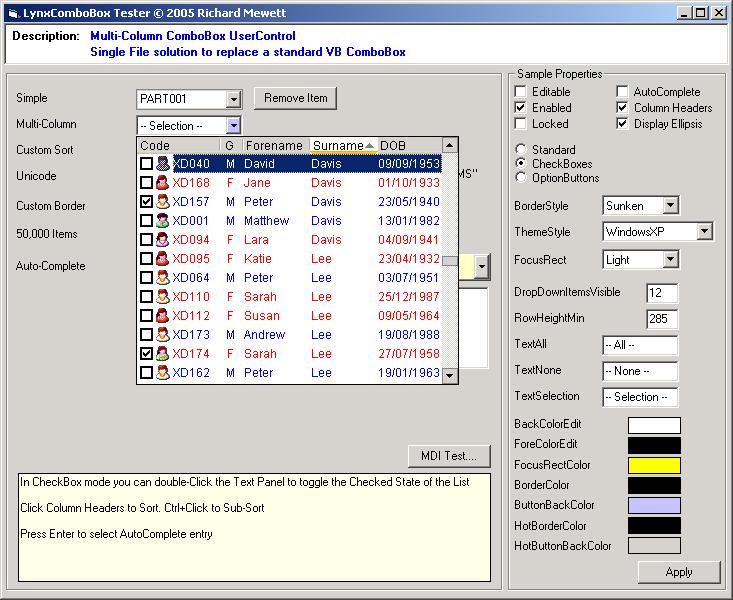 Download LynxComboBox v1.30 (owner-drawn Multi-Column ComboBox with ListView Style) (48 KB)