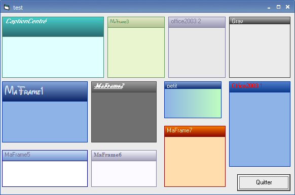** PLEASE VOTE ** The first version of my Frame control. Includes header,gradient color, ambient backcolour, differents border lines, ability to change each border line's colour separately, etc...(it's a beta version)