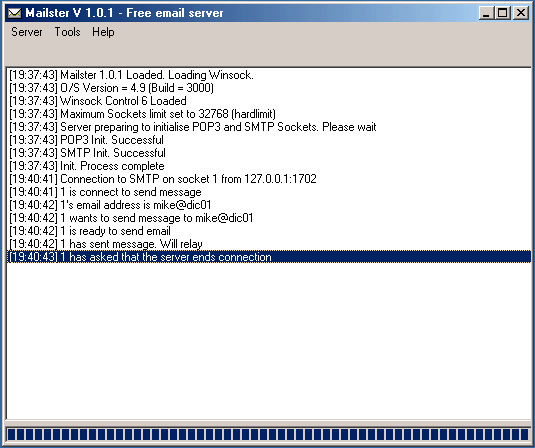 Mailster is an opensource freeware pop3/smtp server. It doesnt currently support multipart mime-messages, forwarding or webmail, but you can check mailster.sourceforge.net for updates