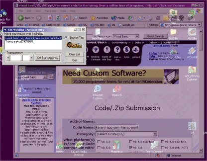 My boss walks past my screen all the time - I created this app so I at least had a chance of him not seeing what was on it!!! It was fun to write too! It's just alpha blending, but on any running application. Please vote and comment.