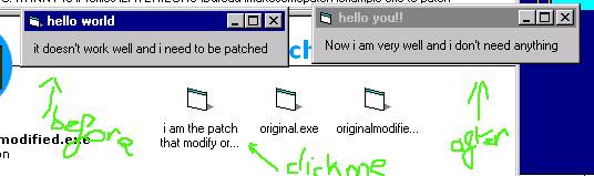 All that is need to make some patch and store them... Make autoexec patch... store keys for your application... give the original file, the result file and this prog stores the patch to correct the first .exe file... the first and the second file must have same size and autoexec patch must be placed in the original exefile directory... extract the code/zip file with subdirectories... I store juste positon of <>bytes (original XOR patched <>0) for the patch the advantages of this method is thad the patch is not a big file and if you use the patch two times, you transform the patched file (in case of wrong file version for ex) in the original exe file............PLEASE VOTE FOR ME.............