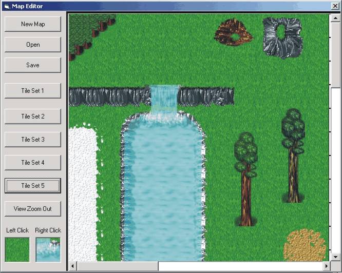 This is a tile map maker that I made for my RPG. You can open and save maps. You can also zoom out and view the whole map. The zip file also includes hundreds of tiles to use in a game. But the file is still under 0.6 MB